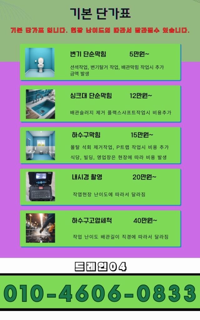 하수구 막힘이 생겼다면 고민하지 마시고 숙련된 전문가에게 고압 세척 서비스를 의뢰하세요. 하수관을 깨끗하게 유지하고 미래의 막힘을 예방하여 건강한 집과 마음의 평안을 누리세요.